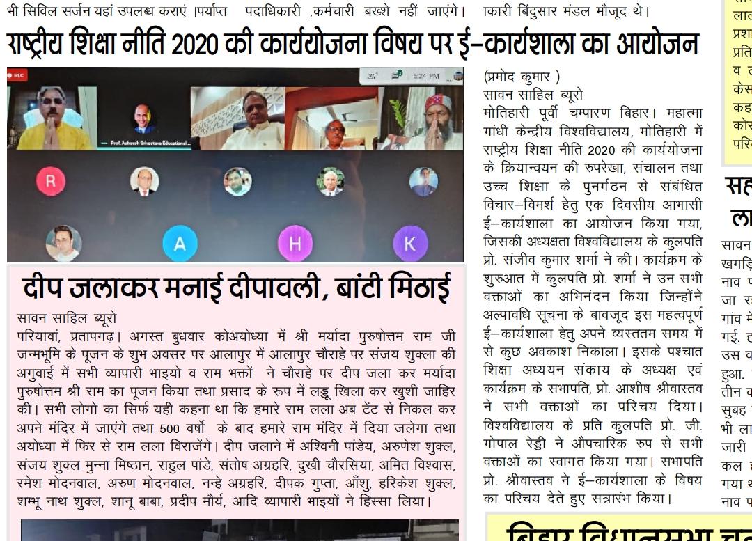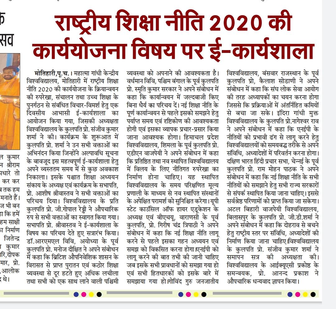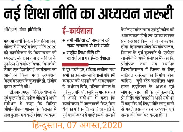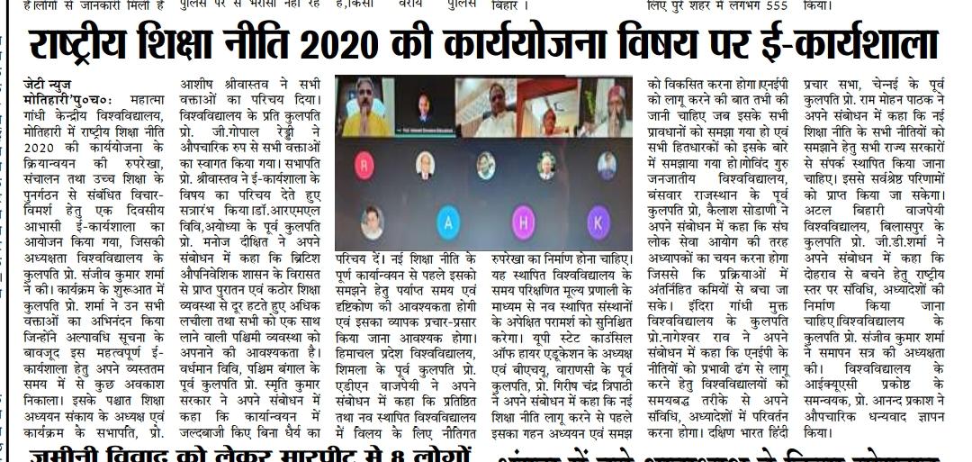 Home Publications Newspaper Clippings E-Workshop & Brainstorming Session on 'Roadmap for National Education Policy2020'