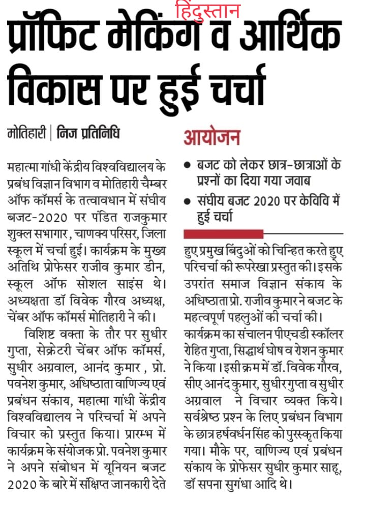 Home Publications Newspaper Clippings Panel Discussion on Union Budget-2020 & Pt Deen Dayal Programme