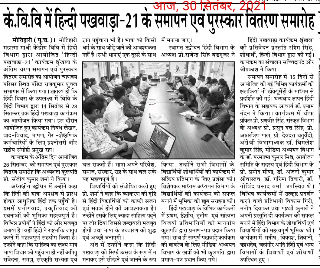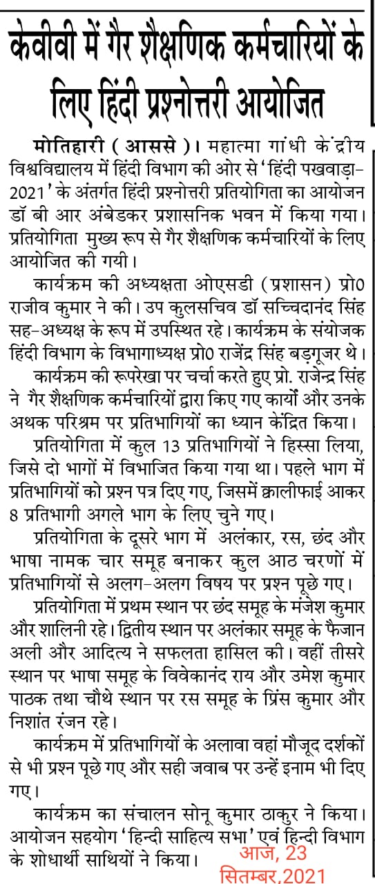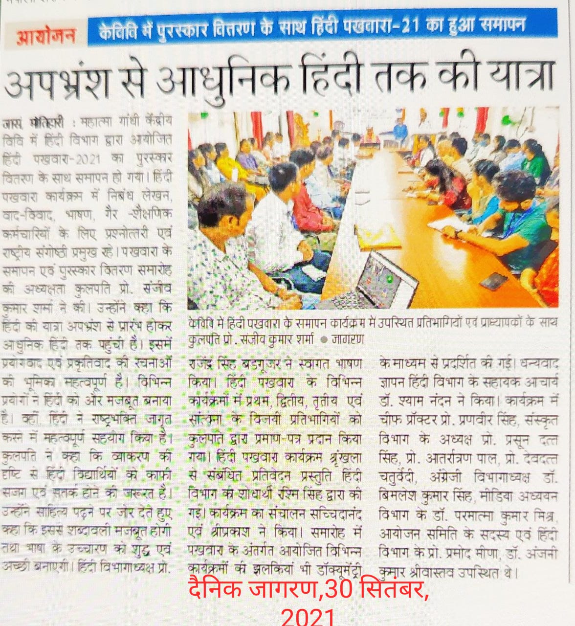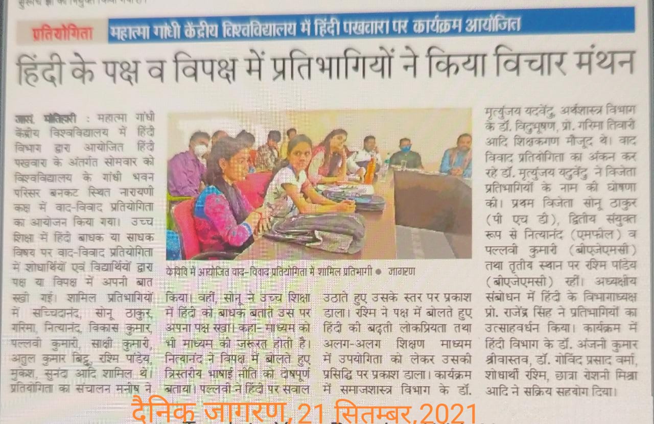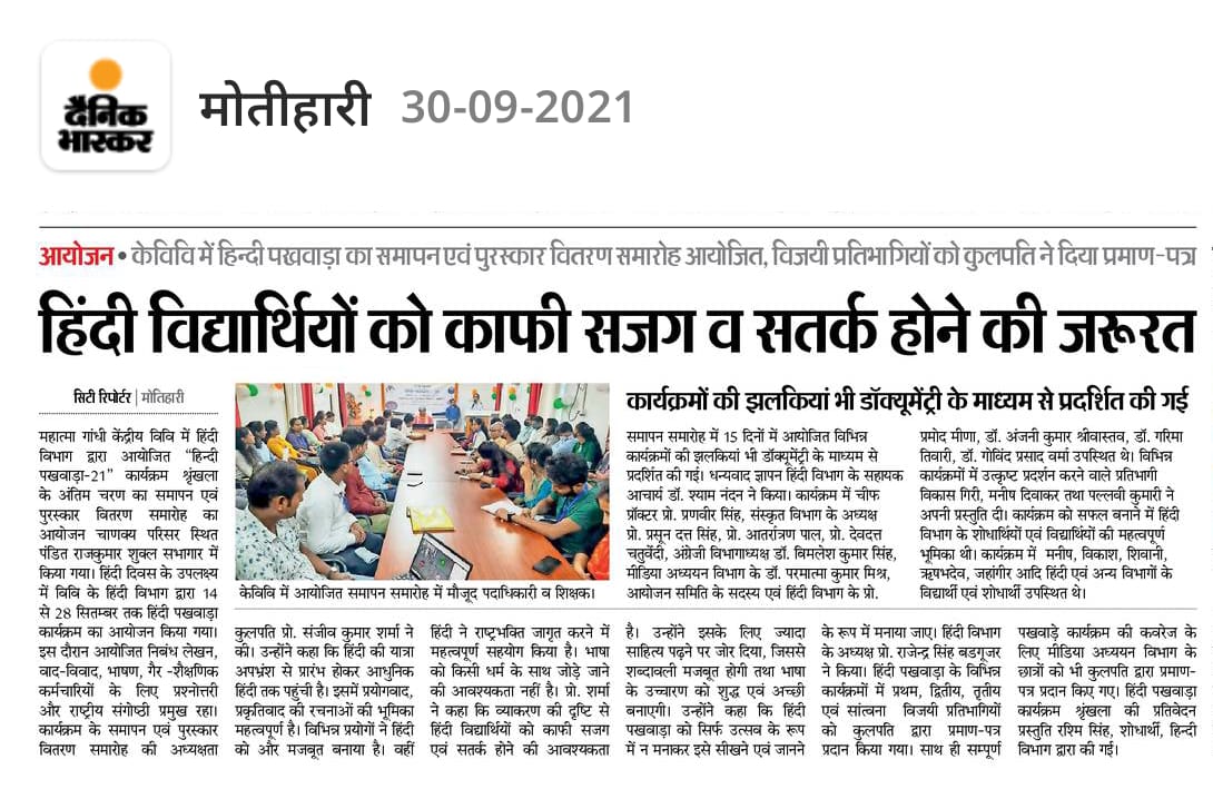 Home Publications Newspaper Clippings हिन्दी दिवस के अवसर पर आयोजित ‘हिन्दी पखवाड़ा-2021’ (14-28th Sept. 2021)