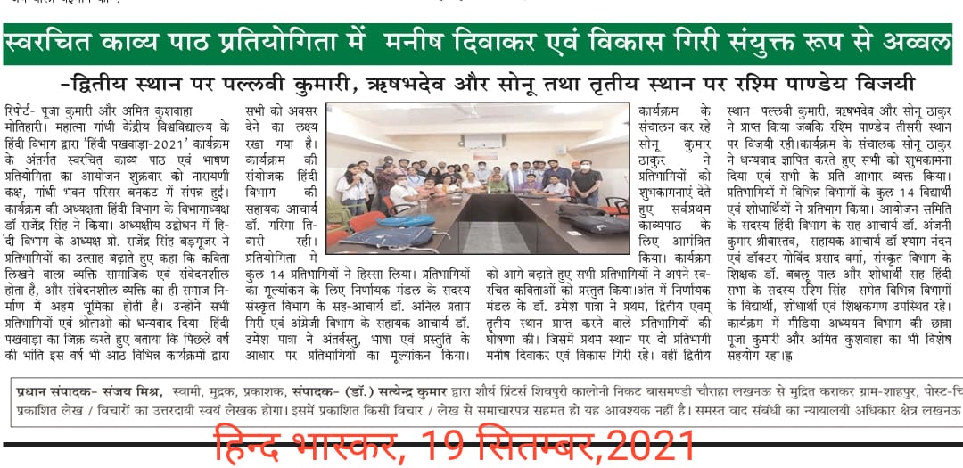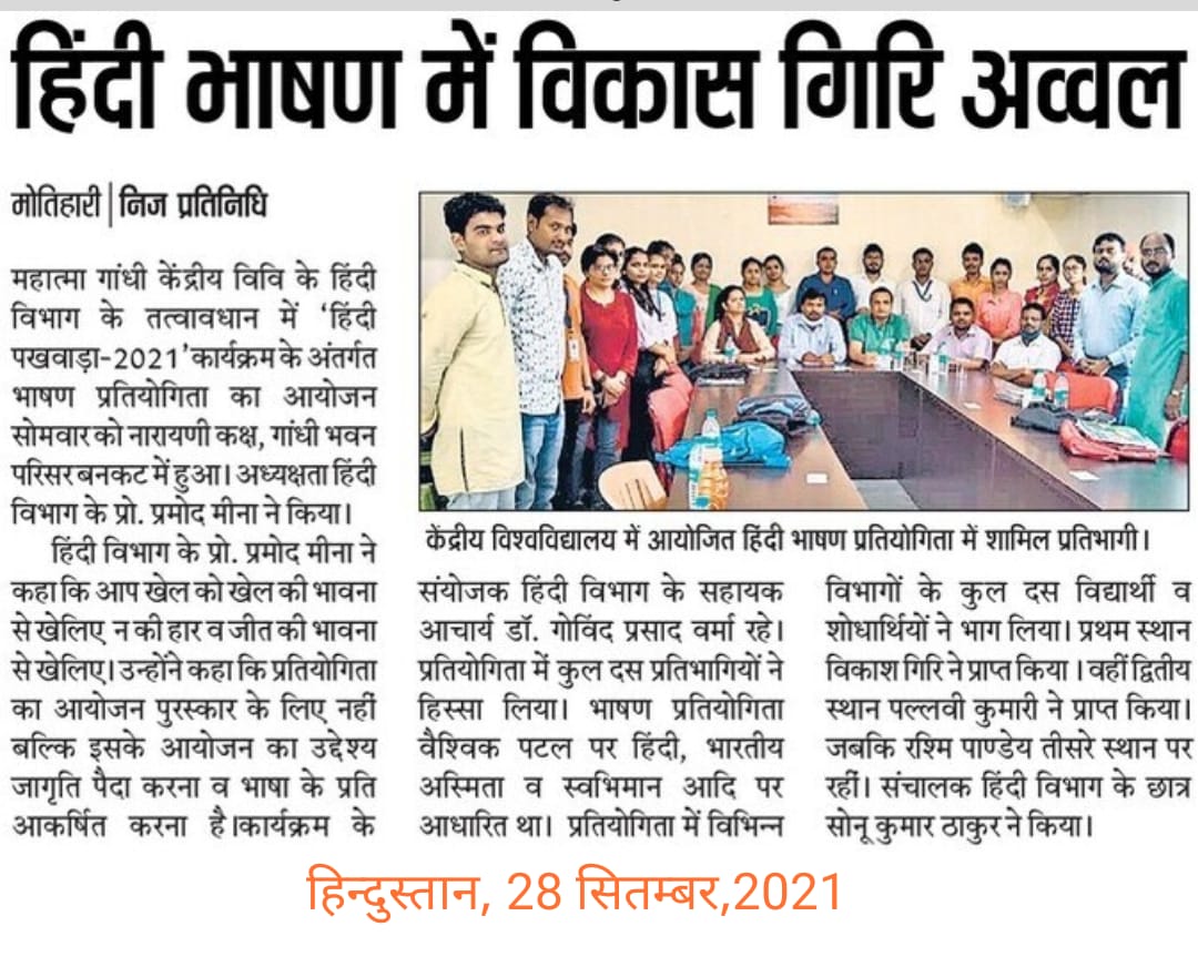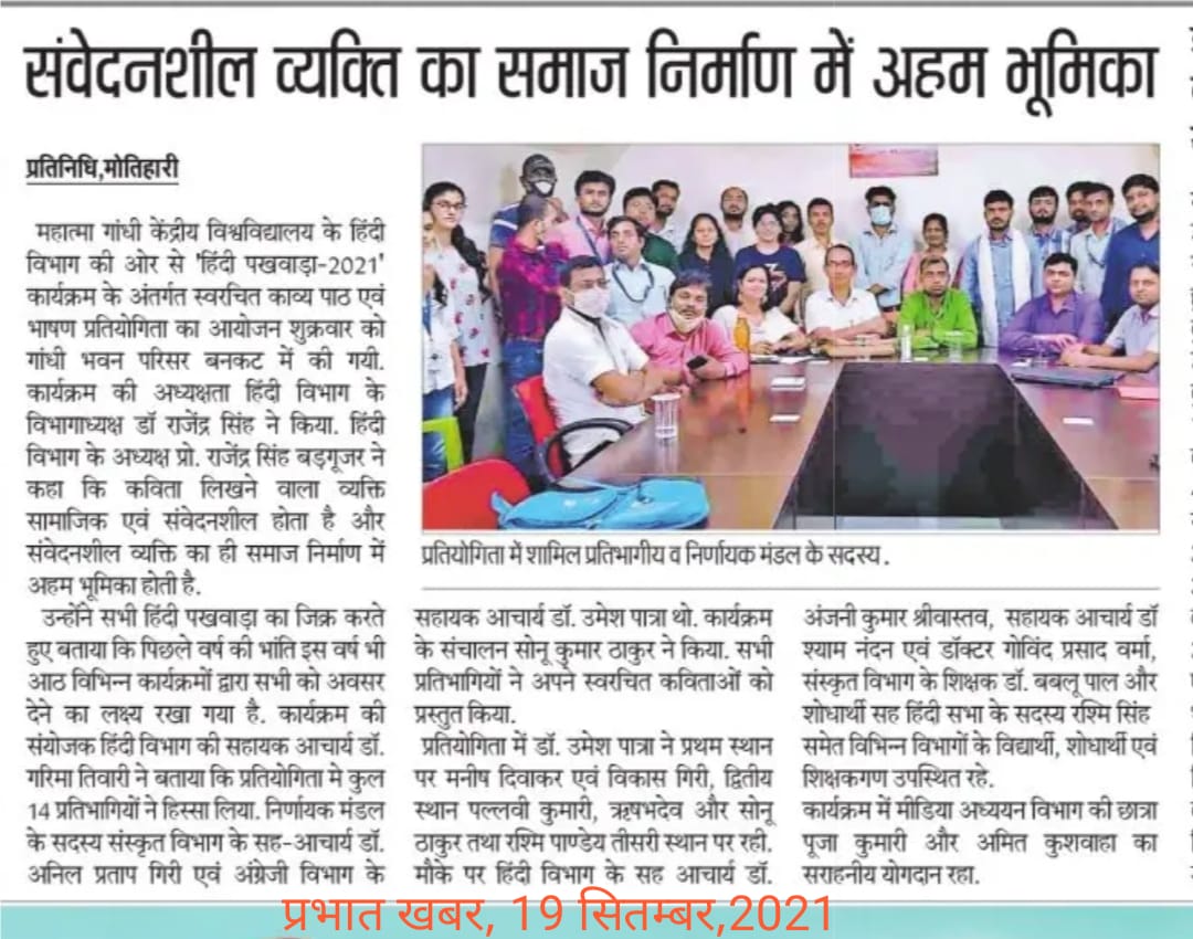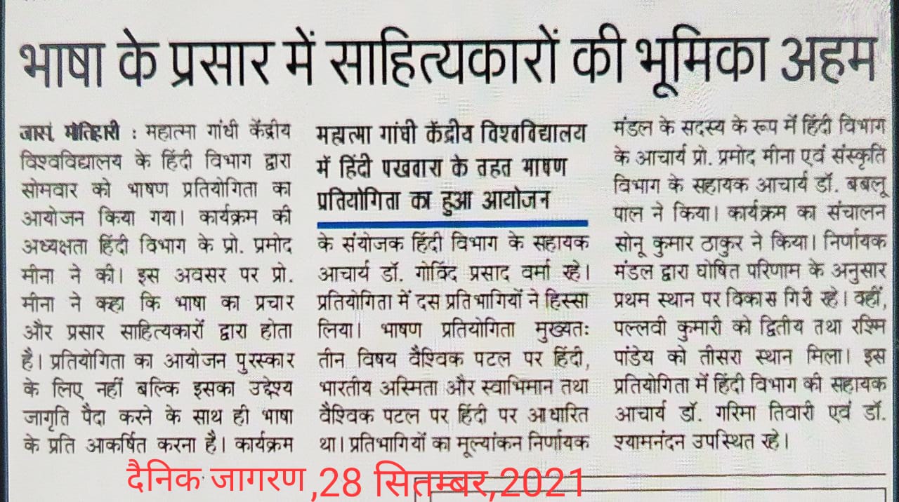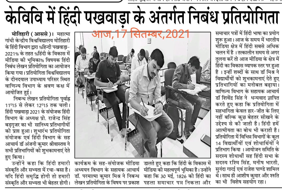 Home Publications Newspaper Clippings हिन्दी दिवस के अवसर पर आयोजित ‘हिन्दी पखवाड़ा-2021’ (14-28th Sept. 2021)