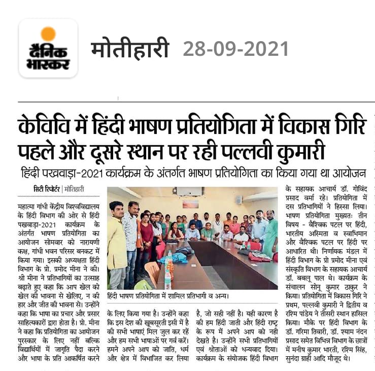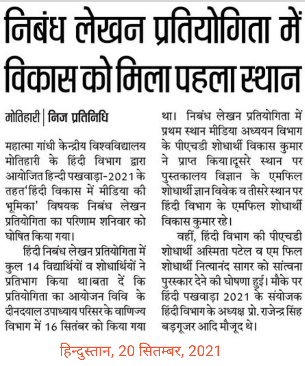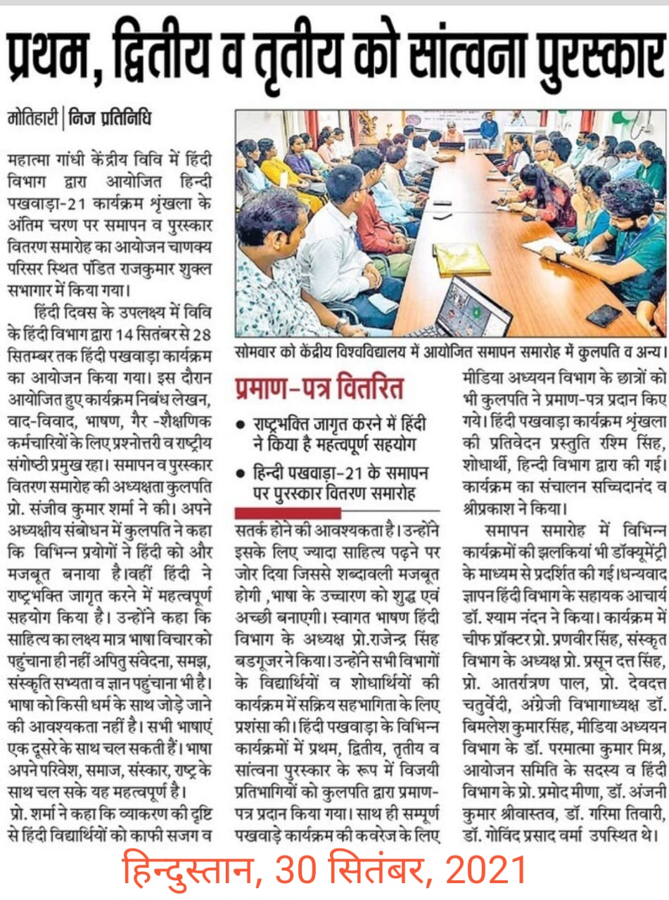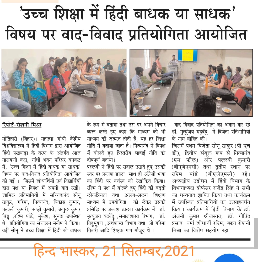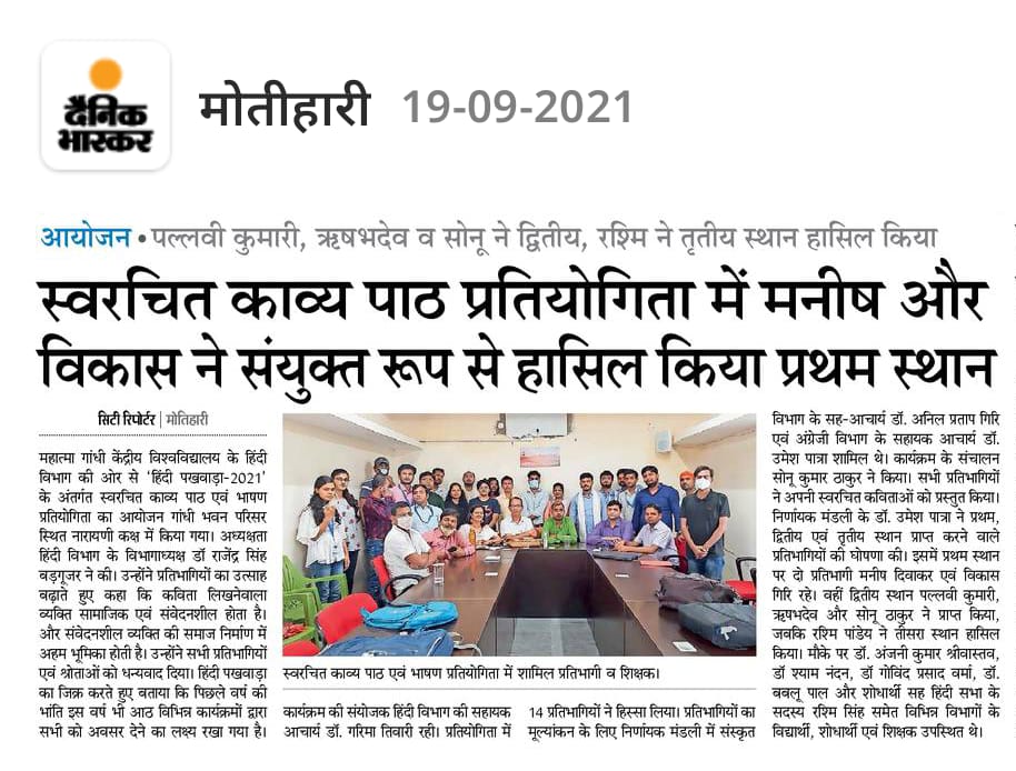 Home Publications Newspaper Clippings हिन्दी दिवस के अवसर पर आयोजित ‘हिन्दी पखवाड़ा-2021’ (14-28th Sept. 2021)