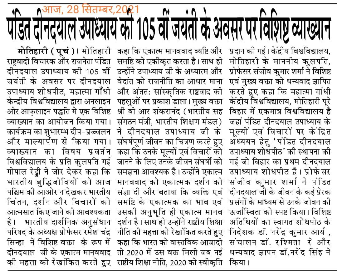 Home Publications Newspaper Clippings Special Lecture organised by Pt. Deen Dayal Upadhyay Shodhpeeth