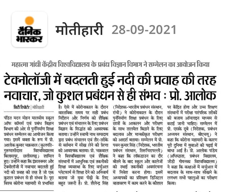 Home Publications Newspaper Clippings Reconstruction Education Management Conference organised by Pandit Madan Mohan Malaviya School of Commerce & Management Sciences