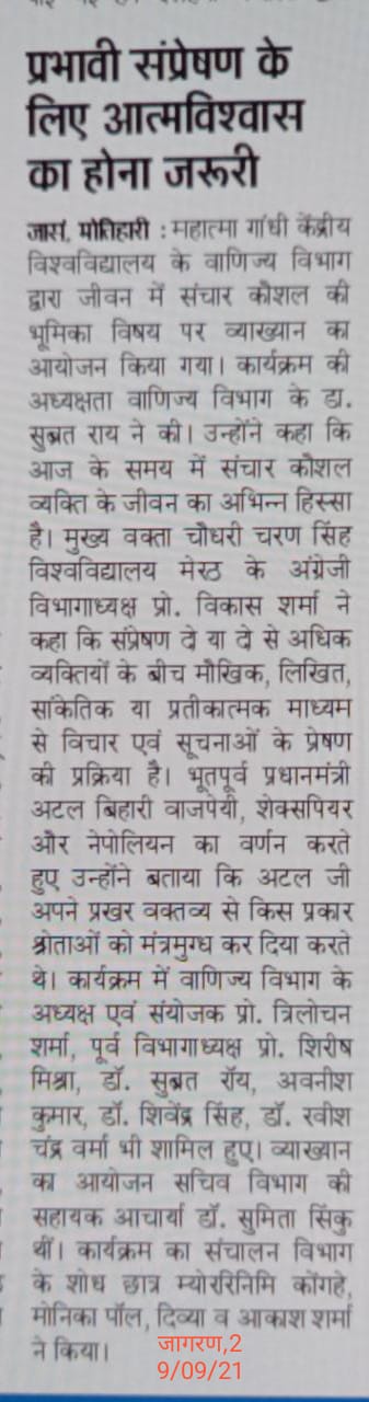 Special Lecture organised by Dept. of Commerce, MGCU