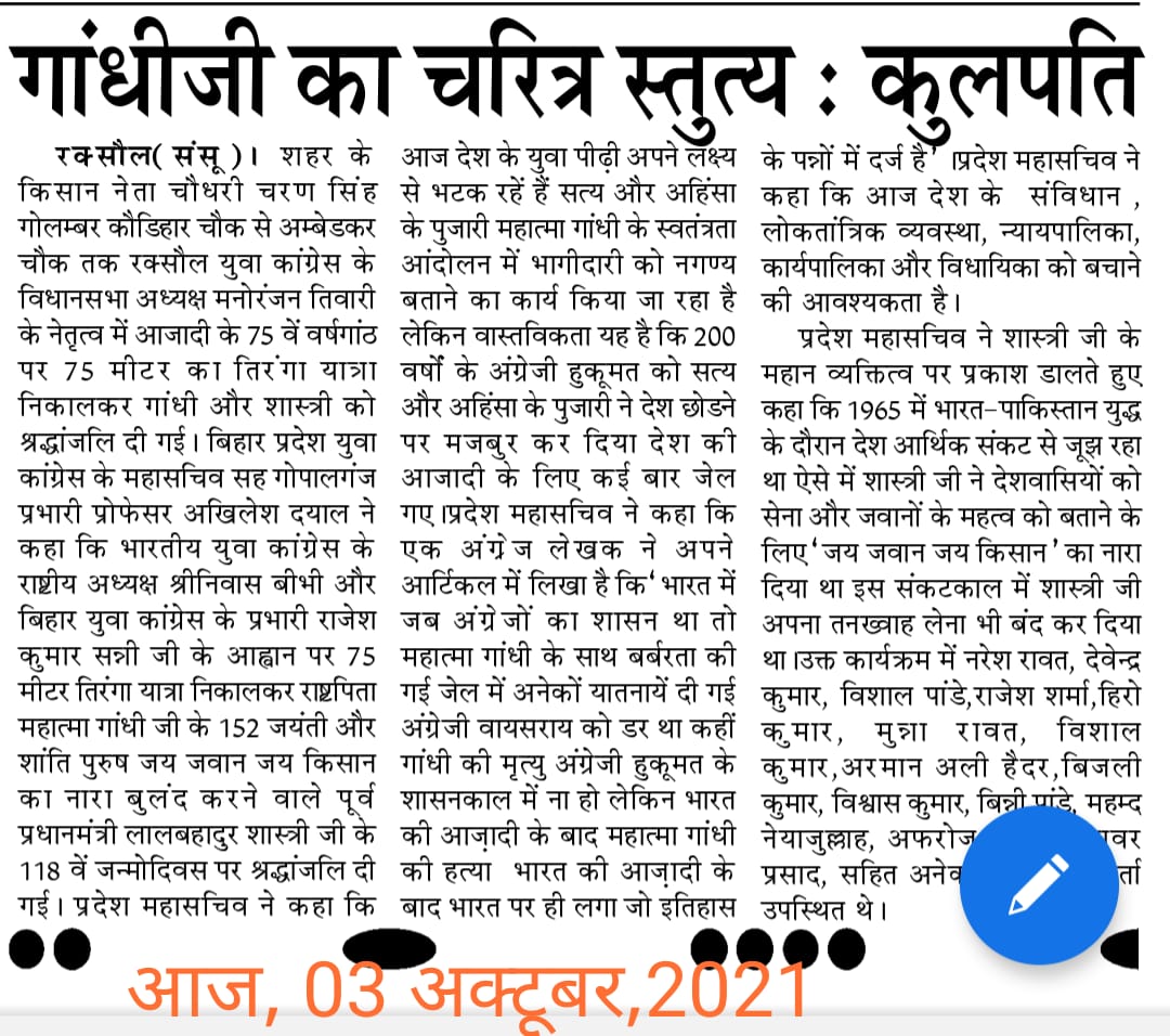 गाँधी जयन्ती एवं पंचम् स्थापना दिवस समारोह