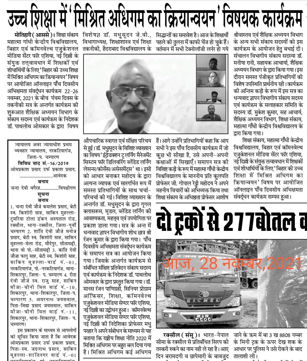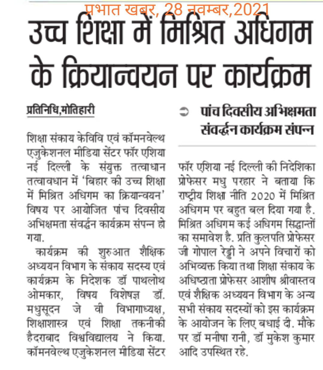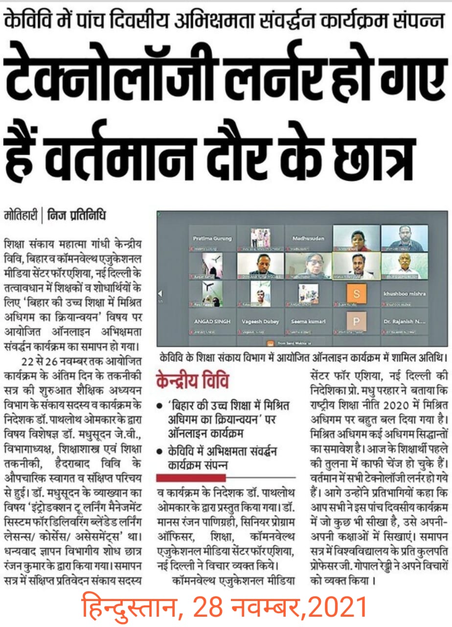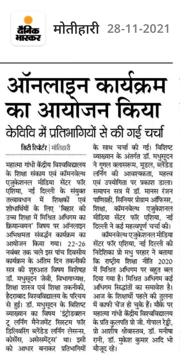 Home Publications Newspaper Clippings ऑनलाइन अभिक्षमता संवर्द्धन कार्यक्रम orgainsed by Dept. of Educational Studies