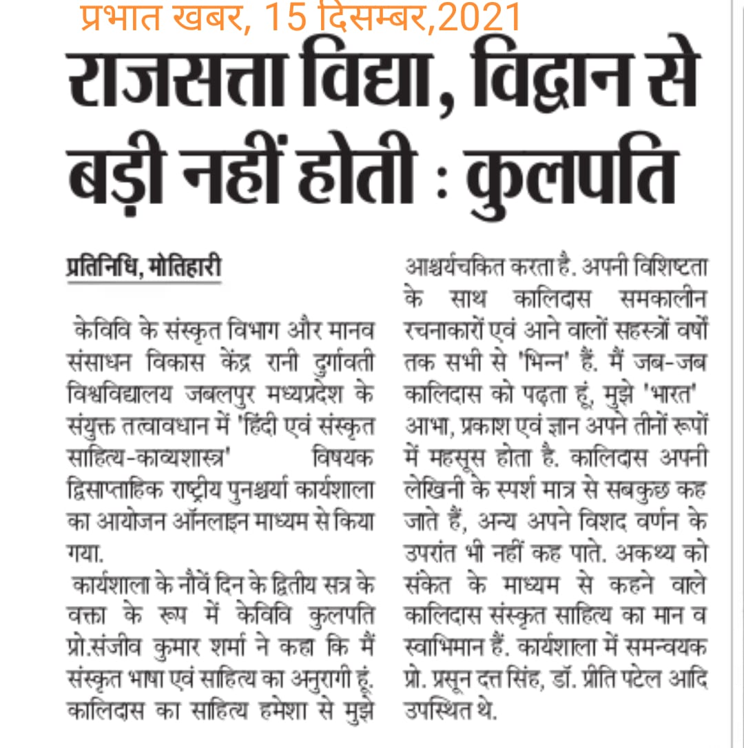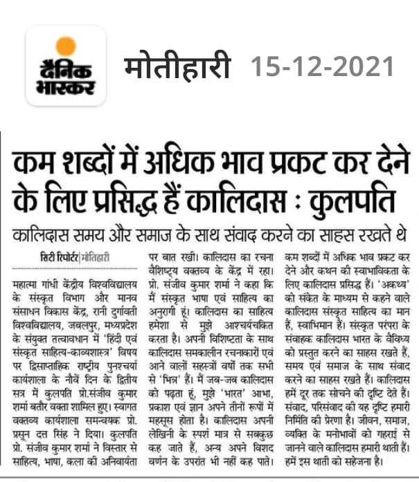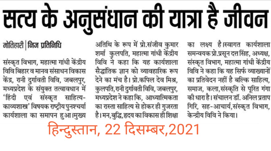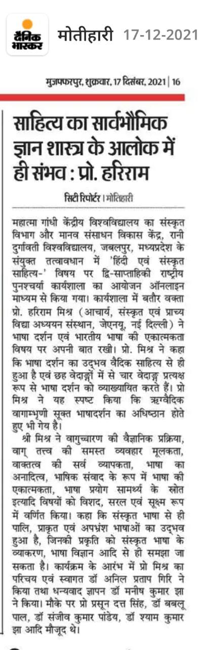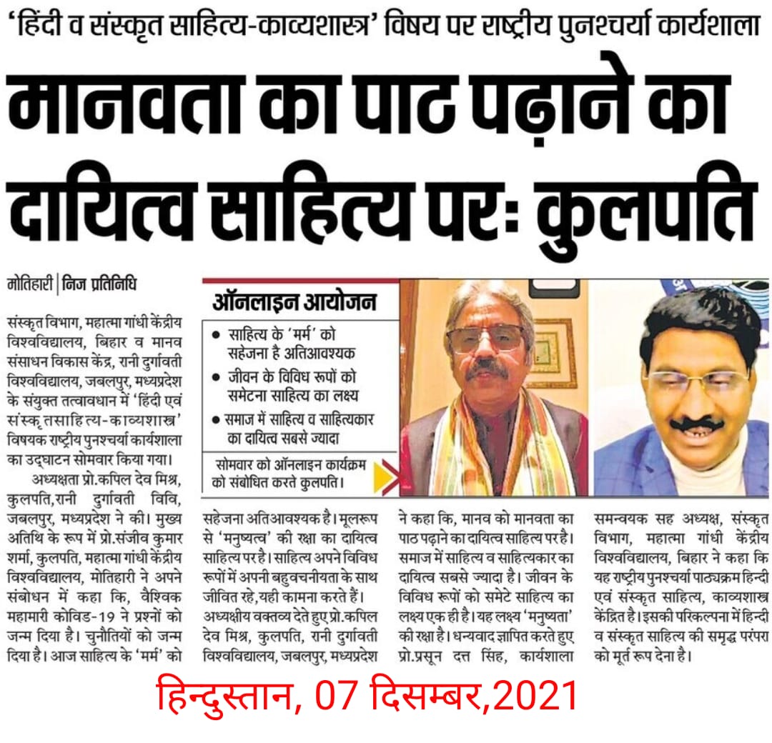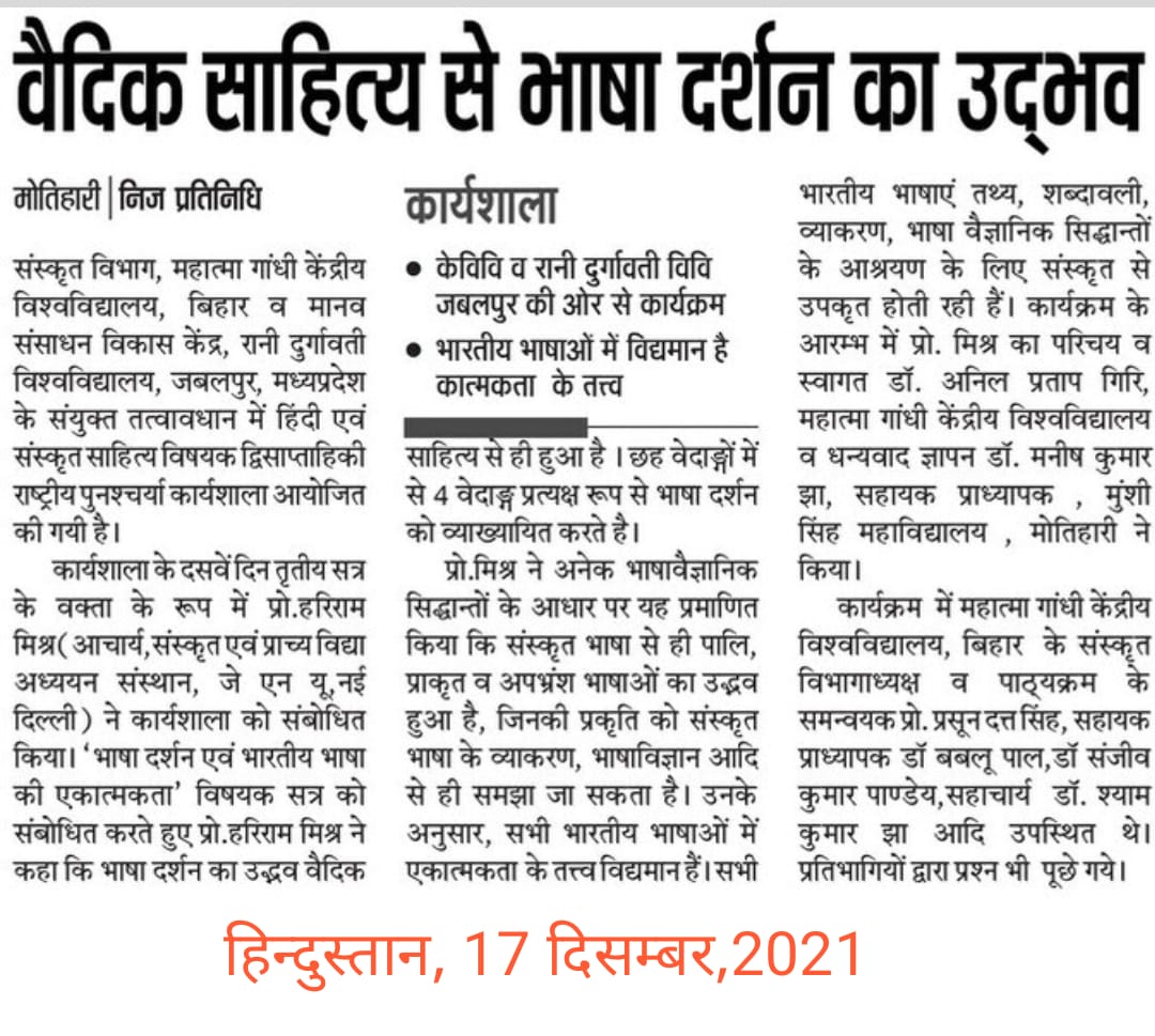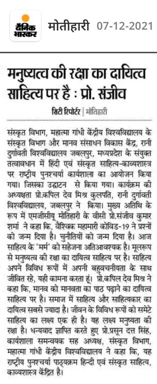 Home Publications Newspaper Clippings National Refresher Workshop organised by Dept. of Sanskrit, MGCU