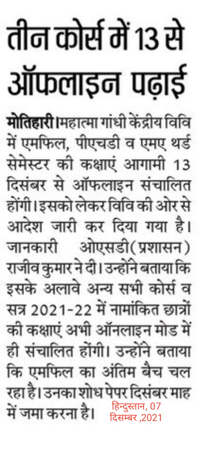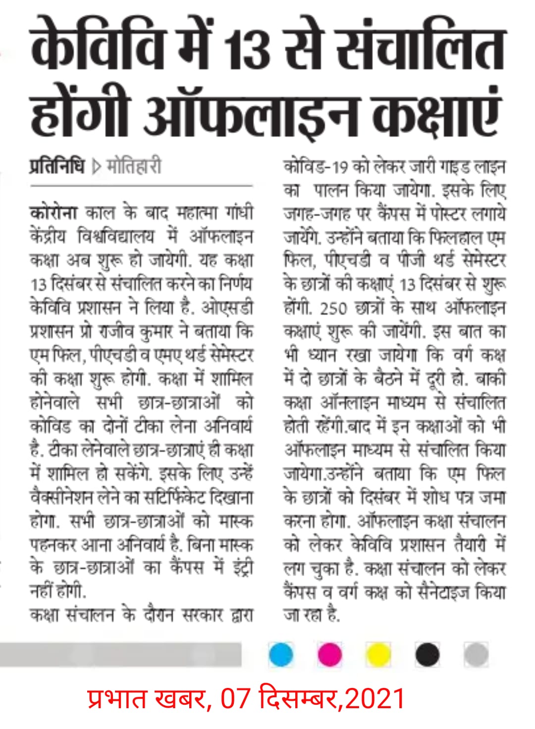 केविवि में कक्षाओं का संचालन