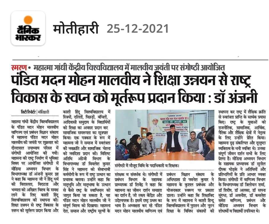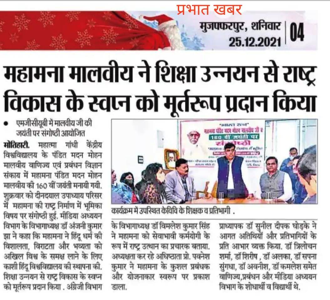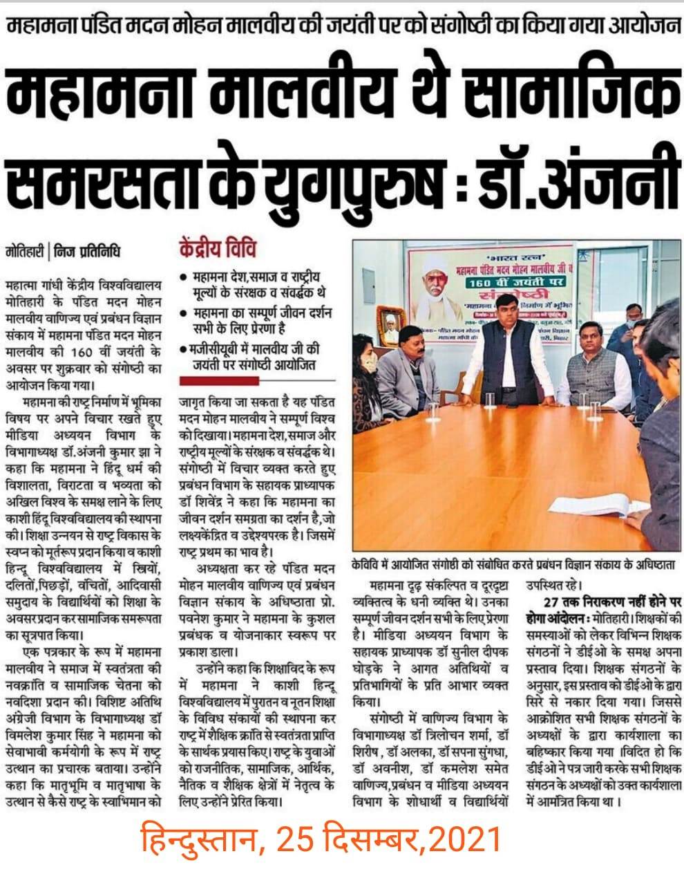 पं० मदन मोहन मालवीय की जयन्ती पर आयोजित संगोष्ठी